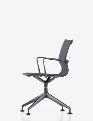 De Physix van Alberto Meda combineert iconisch design met een nieuwe toepassing: een doorlopende zitschaal waarbij stof wordt opgespannen tussen twee zijprofielen. Dankzij een flexibel frame, elastische bekleding en stabilisatiemechanisme ontstaat een dynamische zitervaring die comfort en ondersteuning optimaliseert. Verkrijgbaar als bureaudraaistoel of als Physix Conference met viersteronderstel.