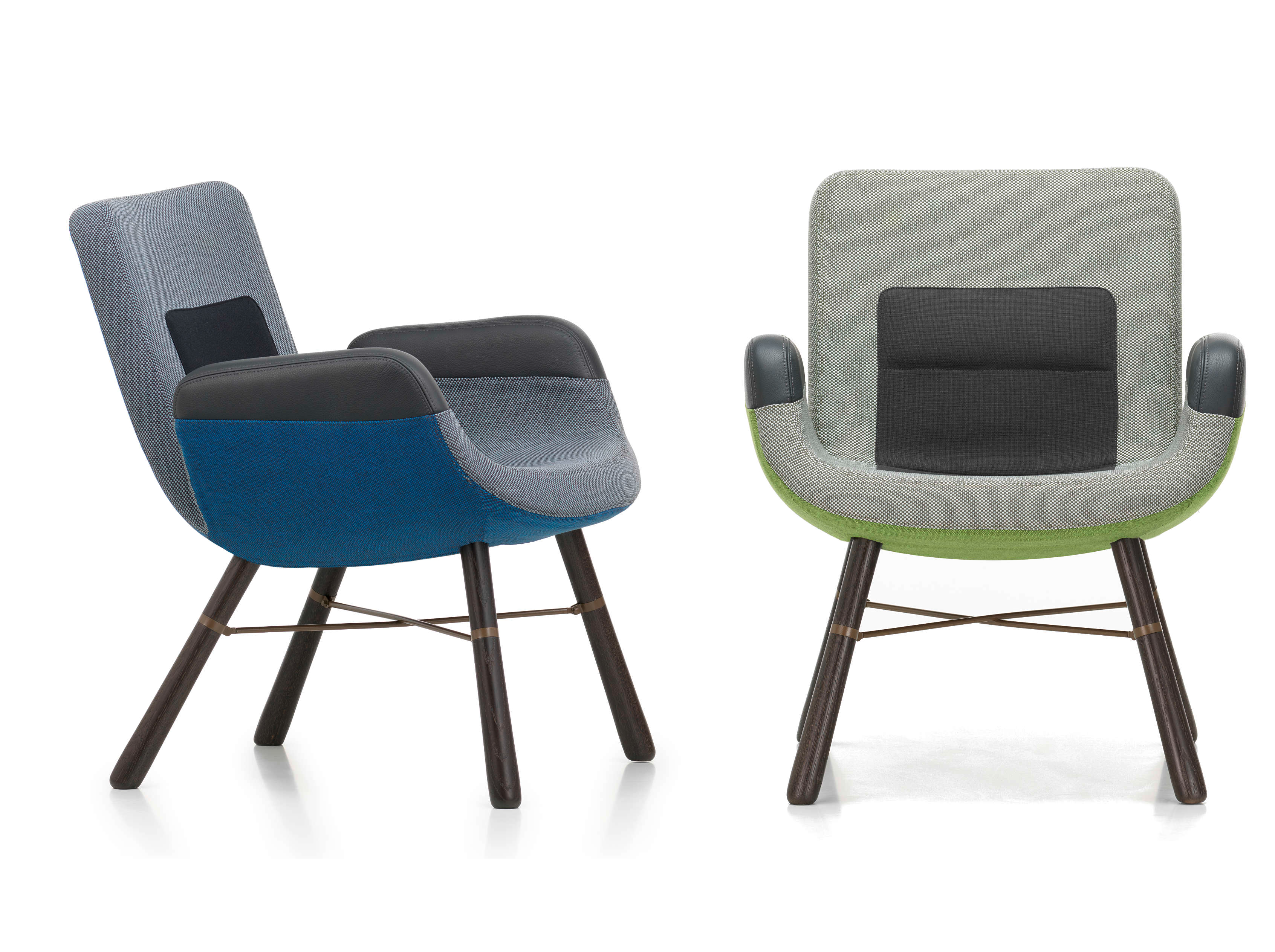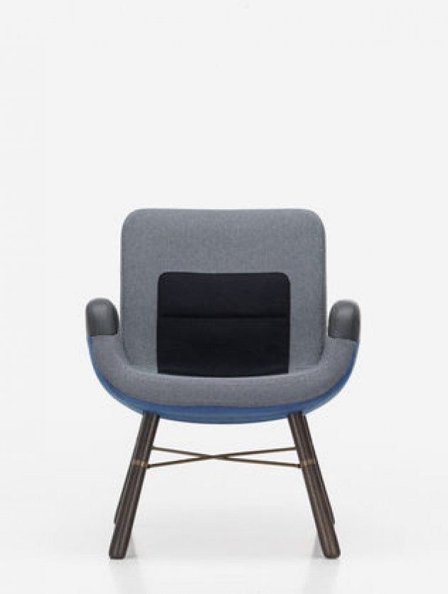 De East River Chair van Hella Jongerius combineert op unieke wijze industrie en handwerk, kunst en techniek, en traditioneel en modern. De stoel valt op door zijn uitgesproken vorm en het gebruik van diverse materialen zoals hout, metaal, leder en textiel. Het zitkussen loopt door tot aan de rugleuning en biedt comfortabele lendensteun, terwijl de lederen armsteunen beschermd zijn tegen slijtage. Dankzij de handgreep aan de achterkant is de fauteuil flexibel te verplaatsen. De kleuren zijn zorgvuldig op elkaar afgestemd, waardoor de stoel zowel subtiel als opvallend kan ogen, afhankelijk van de gekozen combinatie.