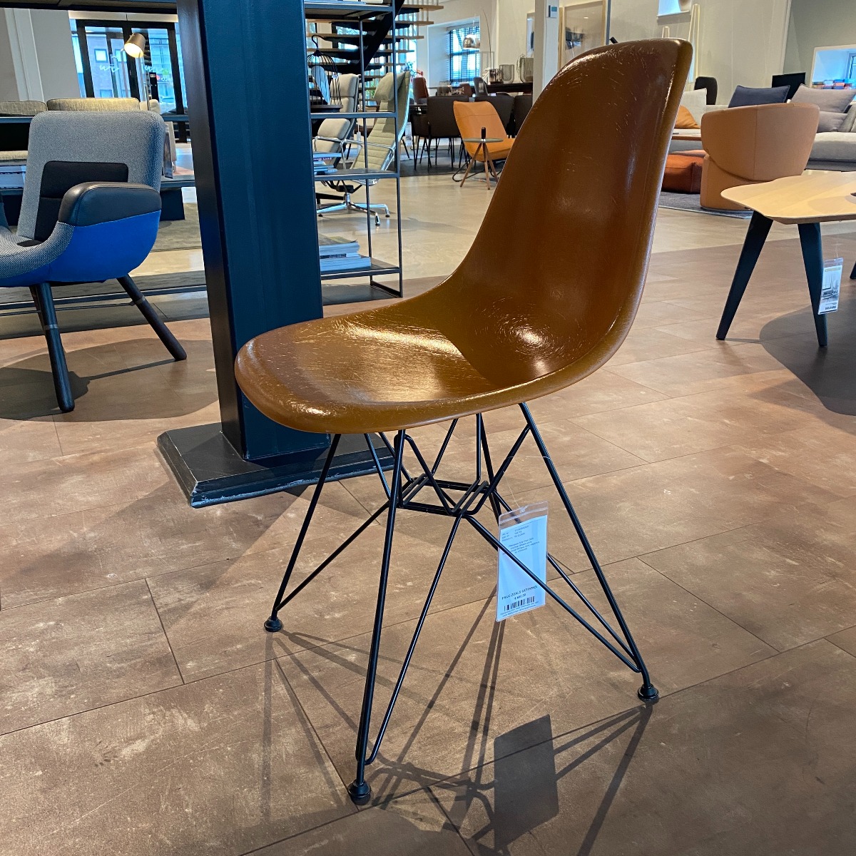 Mooie Vitra Fiberglass Chair in gezellige okergele kleur. Het retro ontwerp van Eames, met zijn organische vorm en stevige glasvezel is een must-have voor elke designliefhebber die van eenvoud en functionaliteit houdt. De warme okertint geeft de stoel een frisse, energieke uitstraling en maakt hem perfect voor een eetkamer of zelfs een creatieve werkplek. Waar zet u deze stoel neer? De okergele Fiberglass Chair is nu voor een outlet prijs beschikbaar in onze showroom.