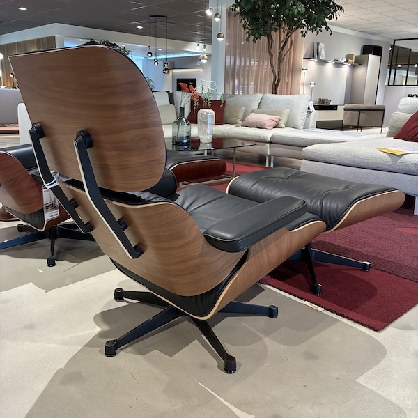 Hét designicoon, de perfecte fauteuil met een houten buitenzijde en premium zwart leder aan de binnenzijde. Dit showroommodel van de Vitra Lounge Chair is nu voor een outlet prijs beschikbaar in onze showroom! De Vitra Lounge Chair is inclusief Ottoman hocker.