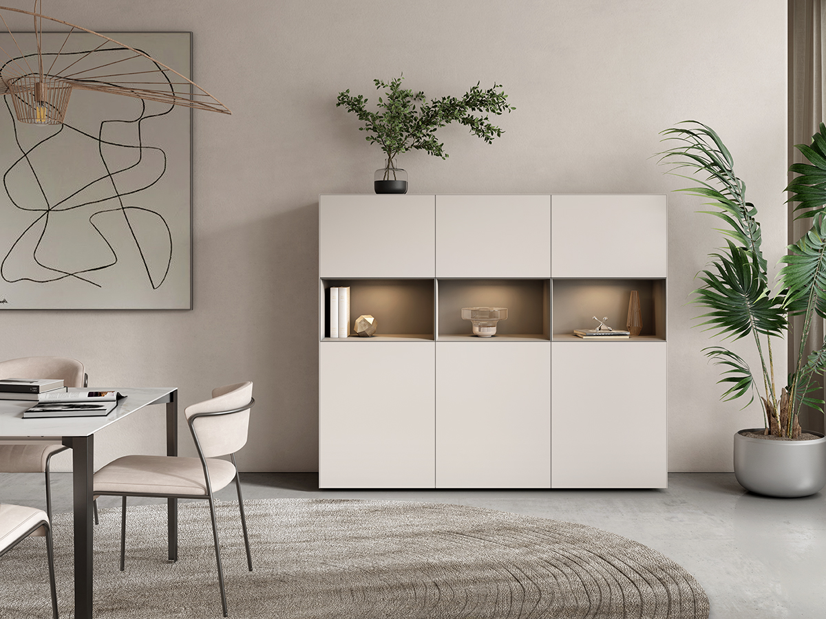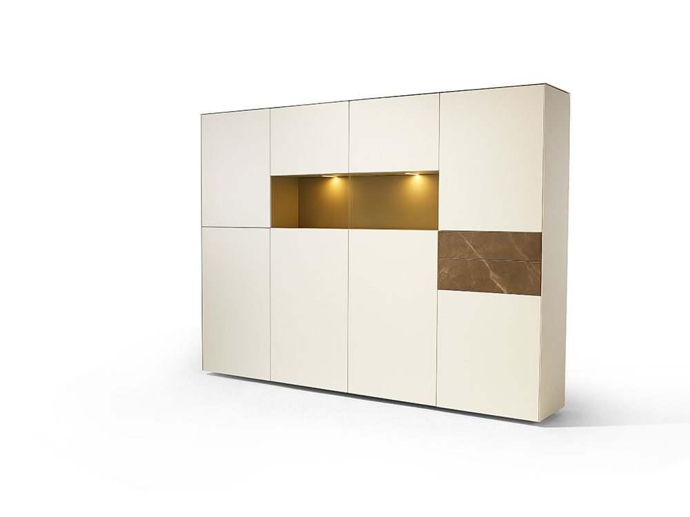 Omarm het minimalistische design van de Yumè Collectie van Crest, geheel ontworpen door Piet Vanasten. De collectie combineert natuurlijke patronen met strakke lijnen en wordt volledig op maat geproduceerd in Europa (Portugal). De afmetingen zijn 156 cm hoog en 41 cm diep, met breedtes van 90 tot 300 cm of een veelvoud daarvan.