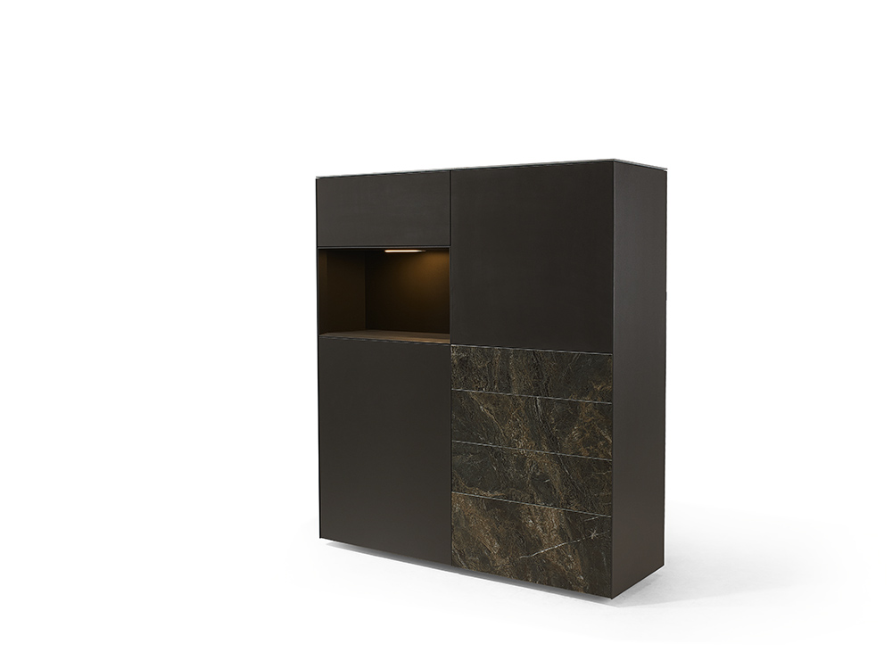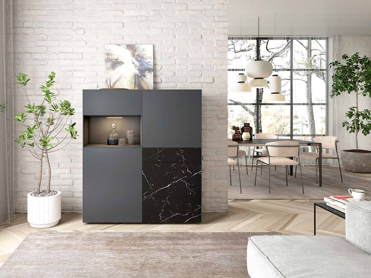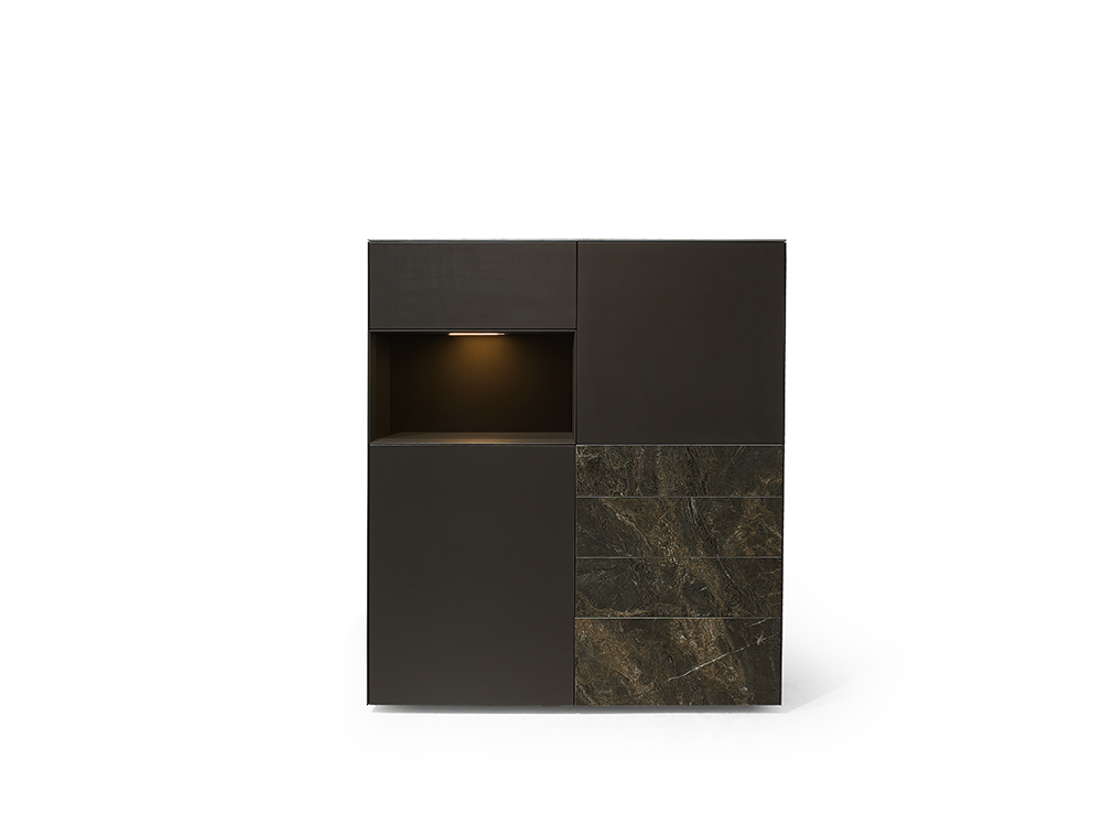 Omarm het minimalistische design van de Yumè Collectie van Crest, ontworpen door Piet Vanasten. De collectie combineert strakke lijnen met natuurlijke patronen en wordt volledig op maat in Europa (Portugal) vervaardigd. Verkrijgbaar in diverse breedtes (90 tot 300 cm) en hoogtes/dieptes van 139 x 41 cm. U kunt kiezen uit materialen zoals structuurlak, handgepolijste hoogglanslak, glas of keramiek, met meer dan 1000 RAL/NCS-kleuren. Voor keramische bladen wordt Neolith-keramiek gebruikt, krasvast en 100% UV-bestendig.