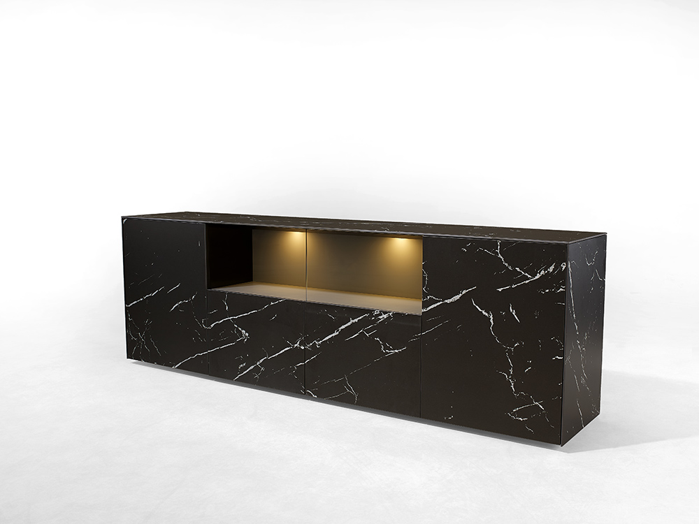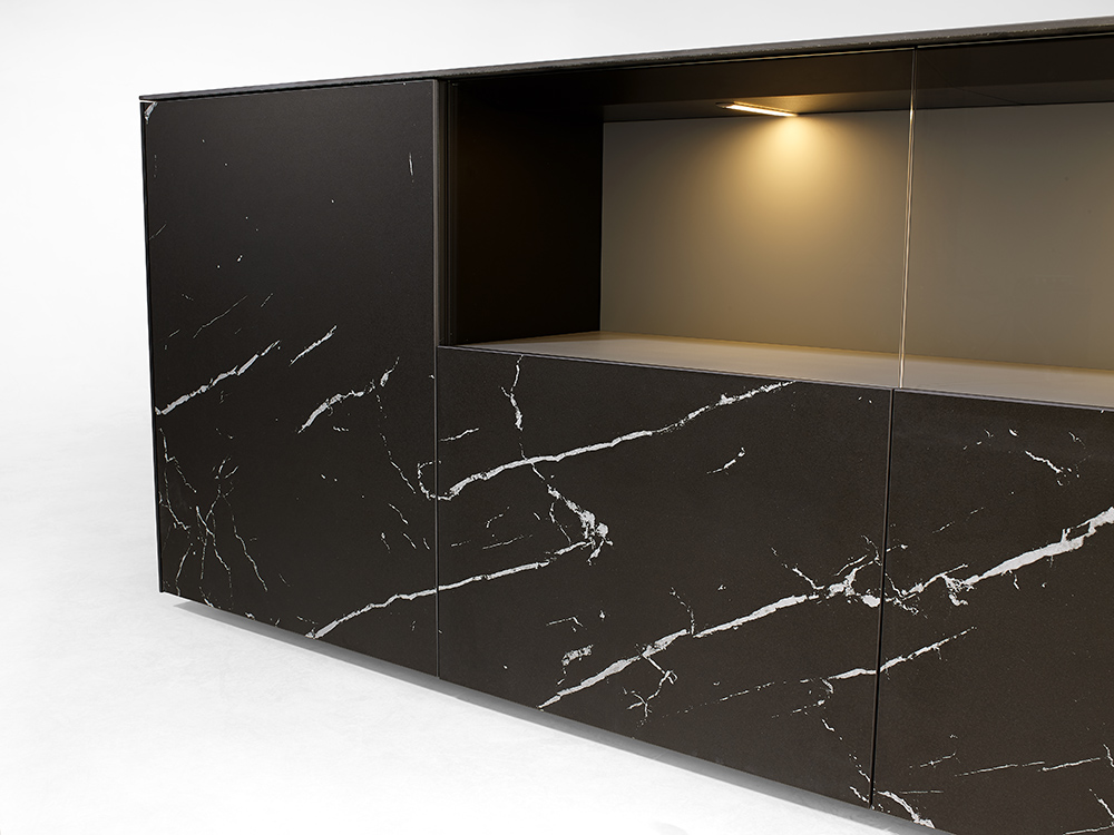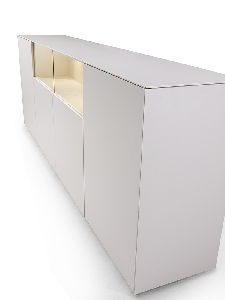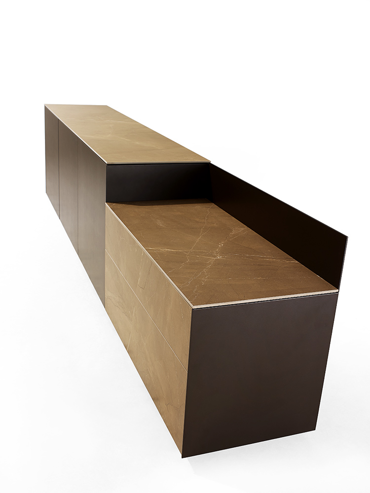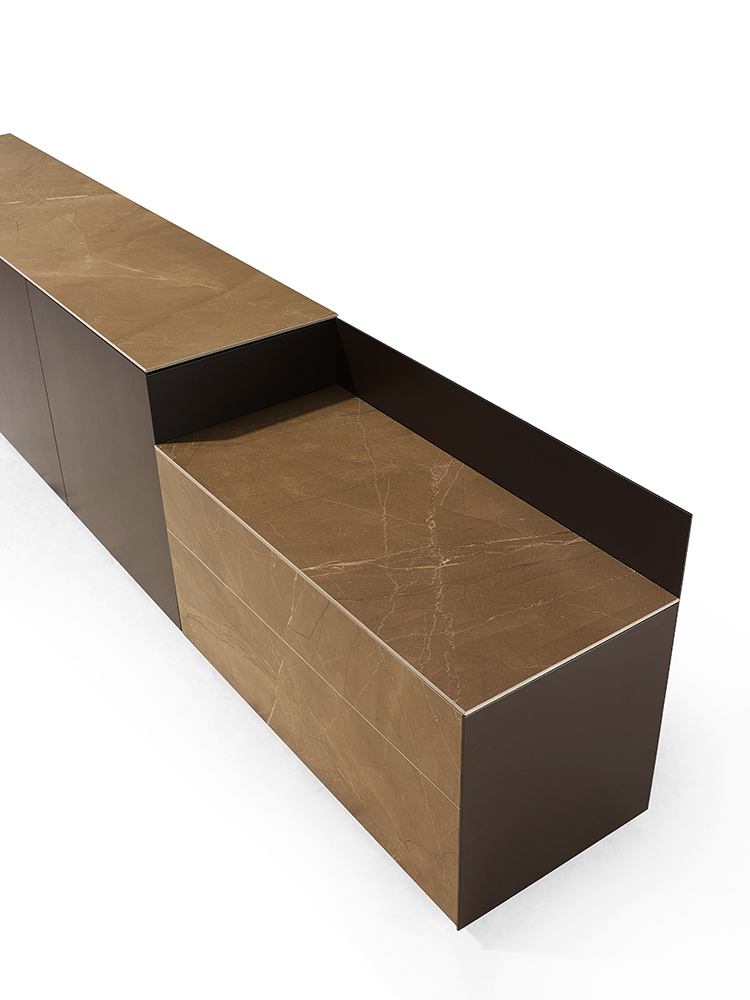 De Yumè Collectie van Crest combineert minimalistisch design met natuurlijke patronen en strakke lijnen. Elk meubel wordt volledig op maat gemaakt. Ontworpen door Piet Vanasten en geproduceerd in Portugal. Verkrijgbaar in diverse materialen: structuurlak, hoogglanslak, glas en krasvast keramiek (Neolith, UV-bestendig), met 16 standaard lakkleuren en meer dan 1000 RAL/NCS-opties. Afmetingen: H 62 × D 41 cm.