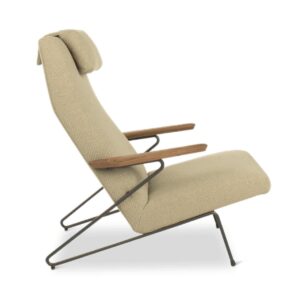 De Elzerd fauteuil werd in 1956 ontworpen door Koene Oberman, oprichter van het merk Gelderland. Het zigzaggende stalen onderstel loopt vloeiend over in de houten armleuningen en zorgt voor een luchtige, herkenbare uitstraling. De originele Elzerd is opgenomen in de collectie van het Stedelijk Museum Amsterdam en geldt nog altijd als een hoogtepunt binnen het modern Nederlands meubeldesign.