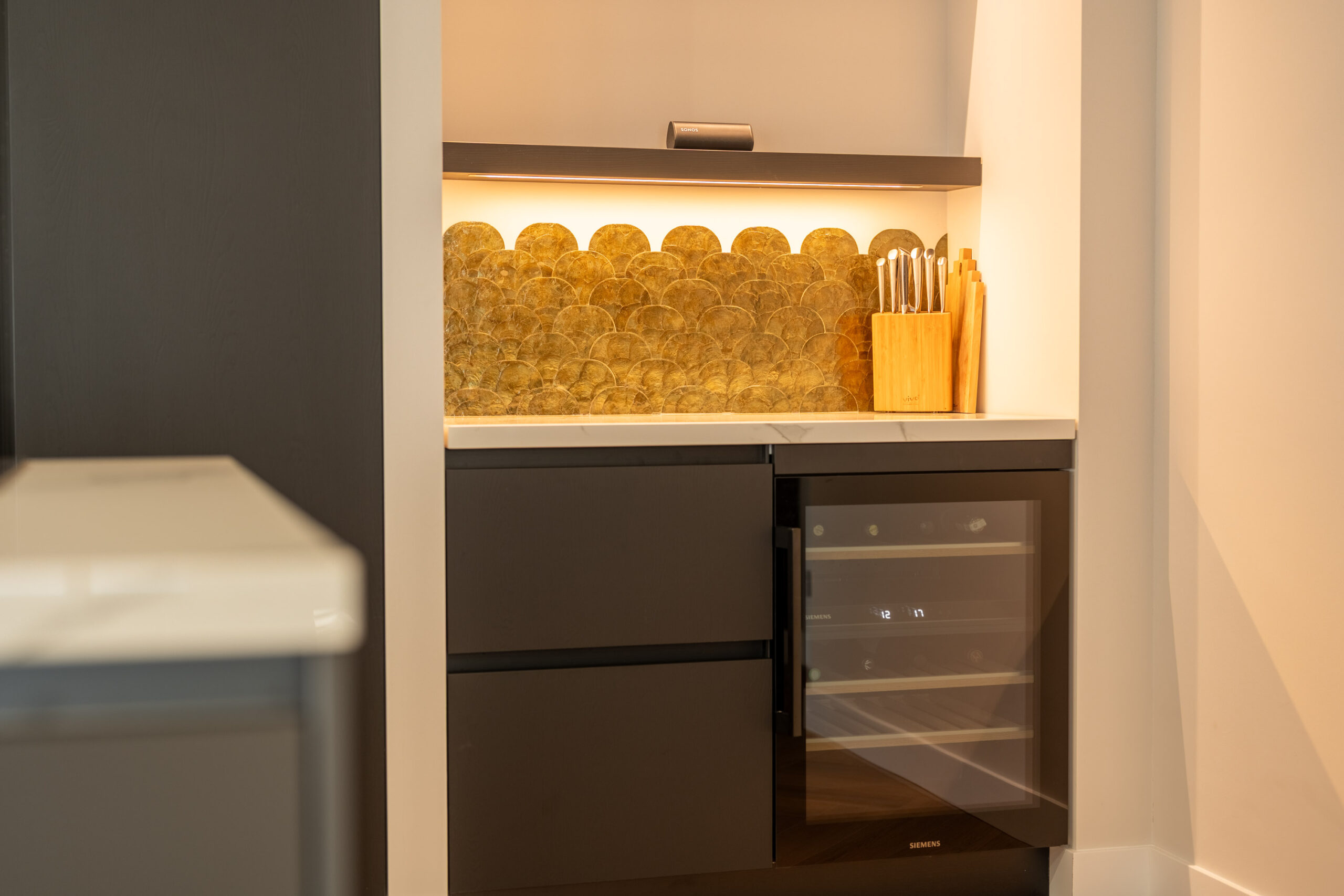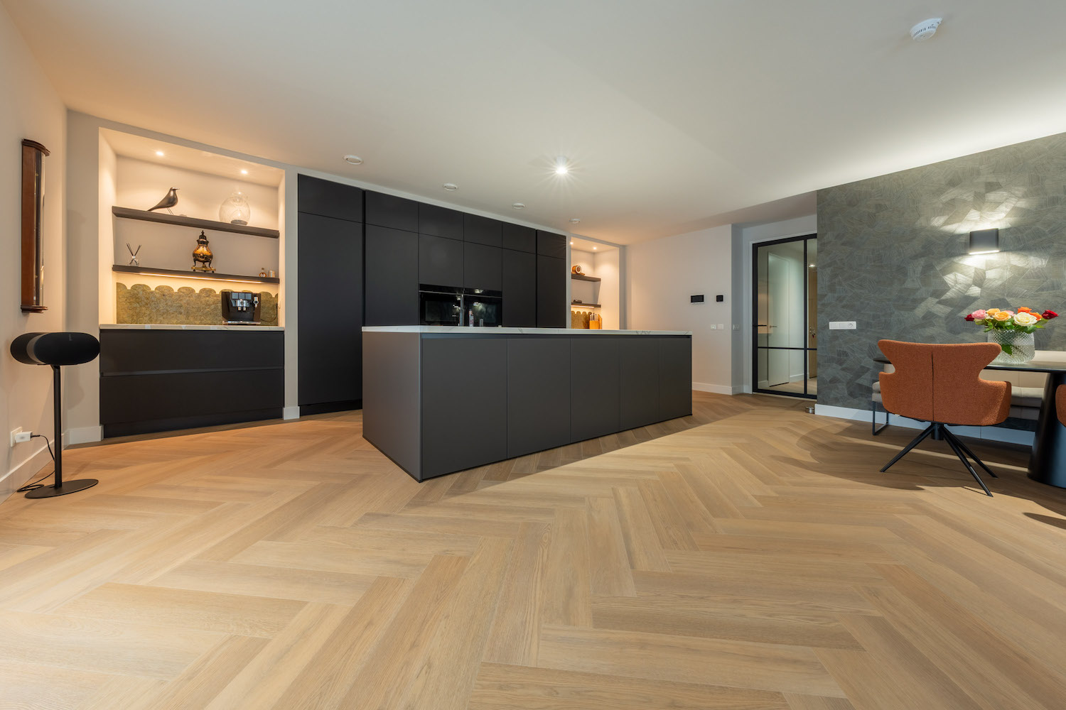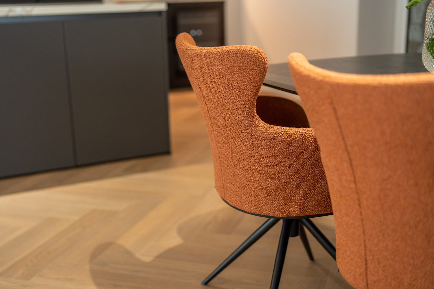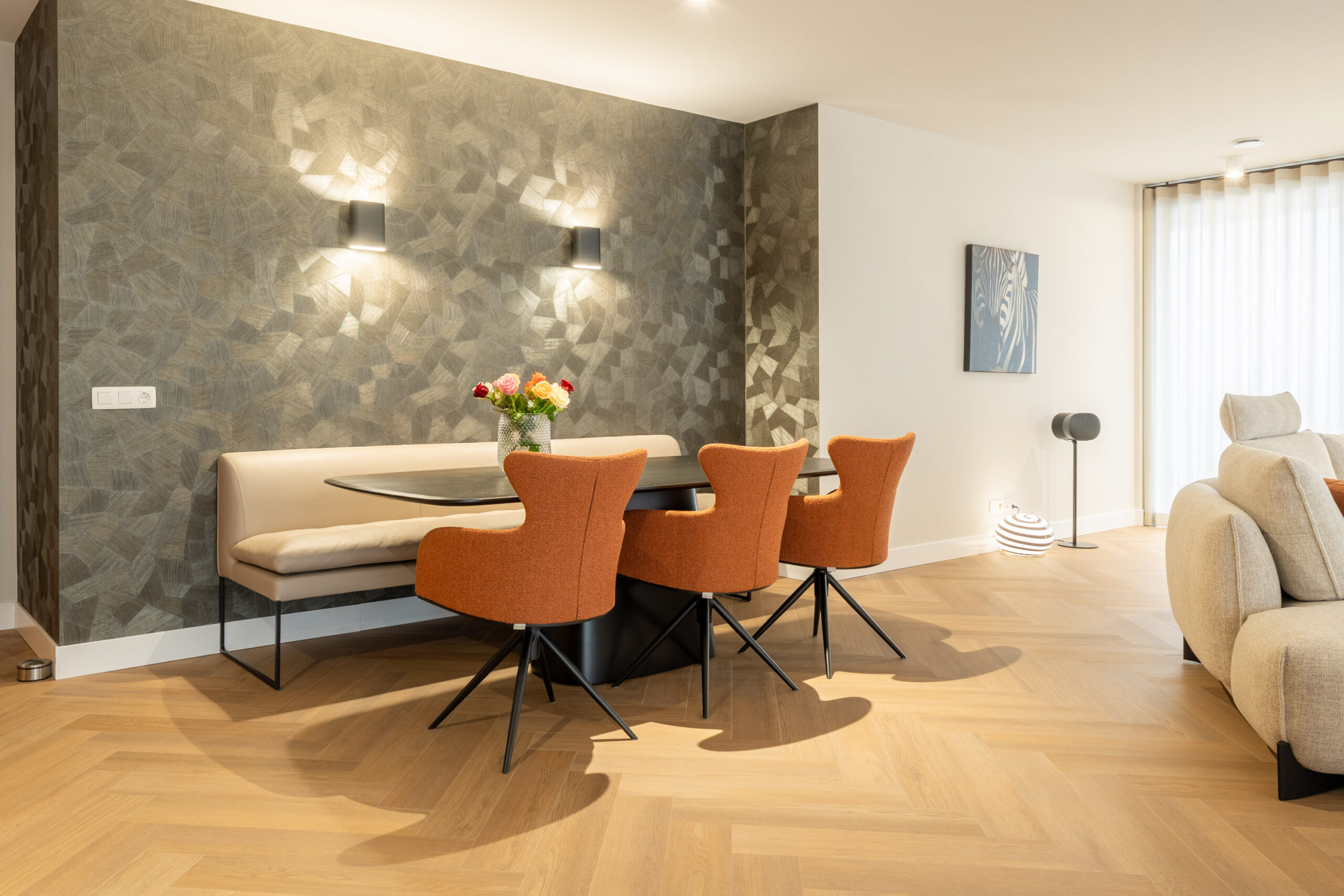 Interieuradviseur Megan begeleidde familie Trieling bij het maken van de juiste keuzes. Door meubels, schilderwerk, behang en vloerafwerking zorgvuldig op elkaar af te stemmen, ontstond er een harmonieus geheel waarin kleur, materiaal en vorm zeer mooi in balans zijn. De ruimte komt hierdoor volledig tot zijn recht en voelt tegelijkertijd warm en uitnodigend aan.