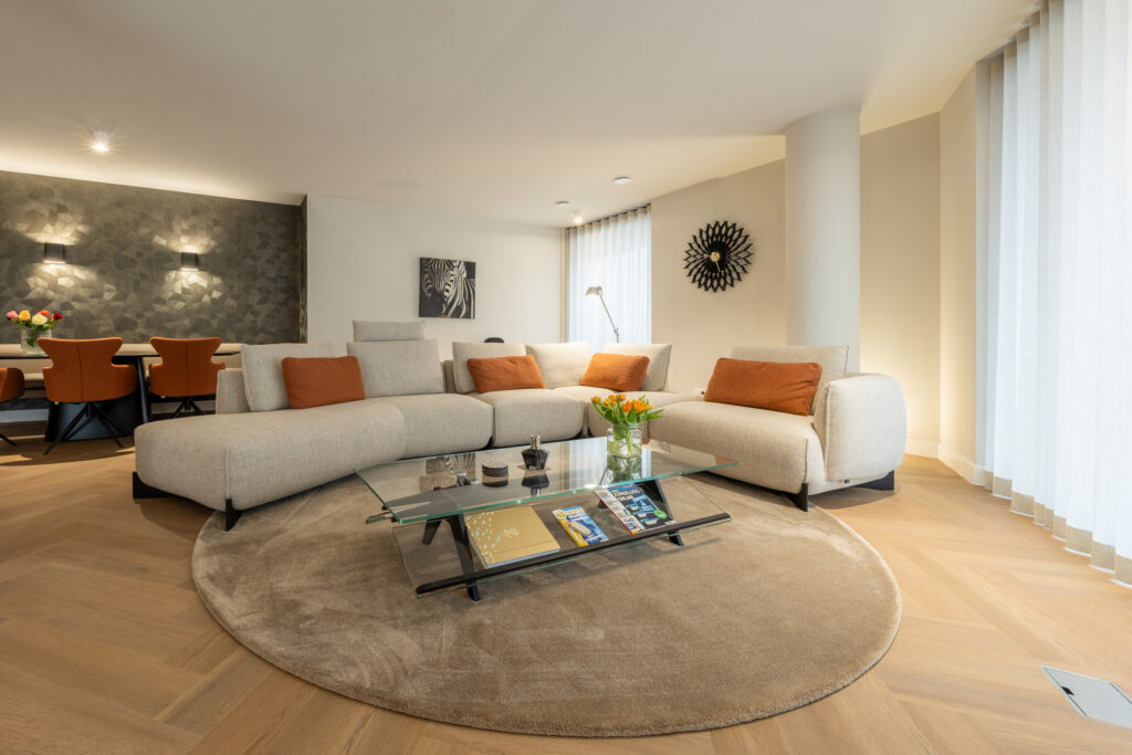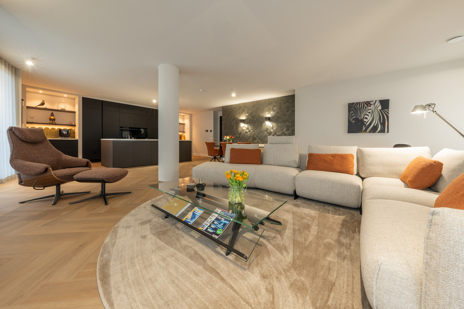 Voor de familie Trieling in Pijnacker mocht Van Waay een interieur realiseren waarin een huiselijke sfeer centraal staat. Hun nieuwe appartement beschikt over een ruime woonkamer met een bijzondere vorm en karakteristieke pilaren. Een mooie, maar ook uitdagende basis voor een doordacht interieurontwerp. Omdat zij kozen voor een volledig nieuwe inrichting en stoffering, kwamen zij, mede door eerdere positieve ervaringen, opnieuw bij Van Waay terecht.