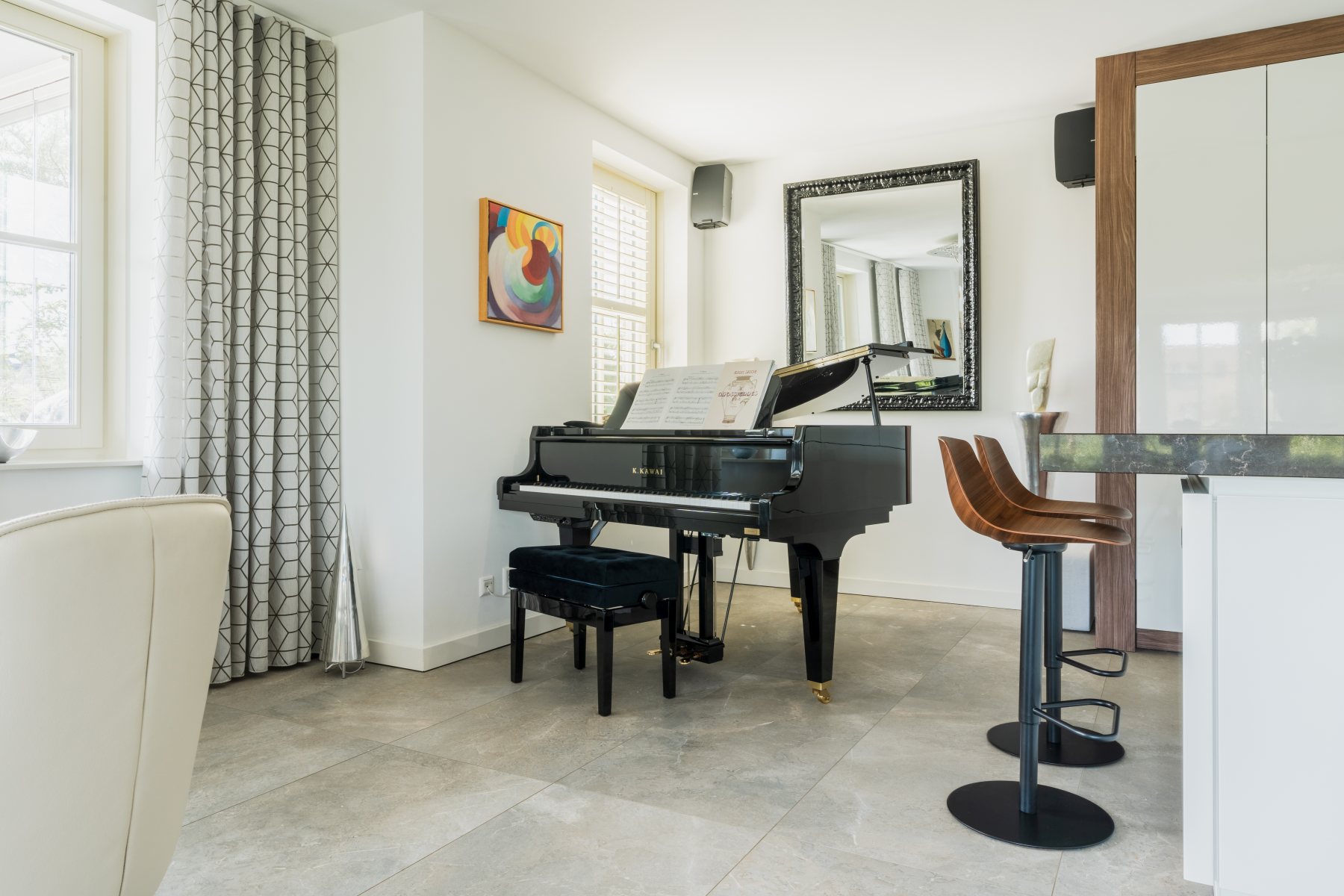 Voor de twee grote raampartijen in onze woonkamer wilden we mooie gordijnen. Alles in ons huis is bedienbaar via domotica, dus we wilden elektrische gordijnrails. Raimond vertelde ons dat we even moesten wachten op het Duitse designmerk Interstil. Na een lange wachttijd werden de rails eindelijk opgehangen.
