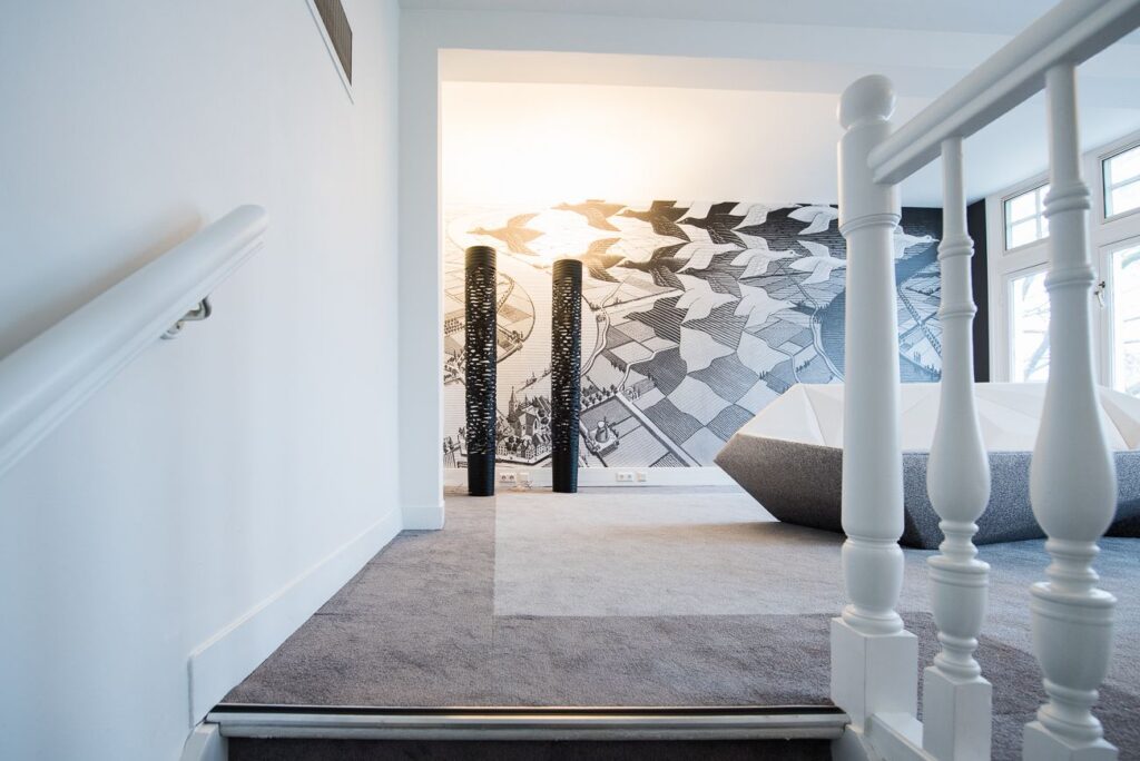 Rabobank Regio Den Haag heeft haar hoofdkantoor aan de Bezuidenhoutseweg te Den Haag recent grondig verbouwd. Niet alleen de gevel heeft een grondige face-lift gekregen, maar ook het gehele interieur is op de schop gegaan. Dit was nodig, omdat de tand des tijds hier z’n werk had gedaan. Onze bank staat voor openheid en transparantie. We zijn toegankelijk voor alle klantgroepen, van studenten tot starters van MKB ondernemers tot internationaal opererende ondernemingen. Hierbij past een moderne en frisse uitstraling met goede, duurzame materialen.